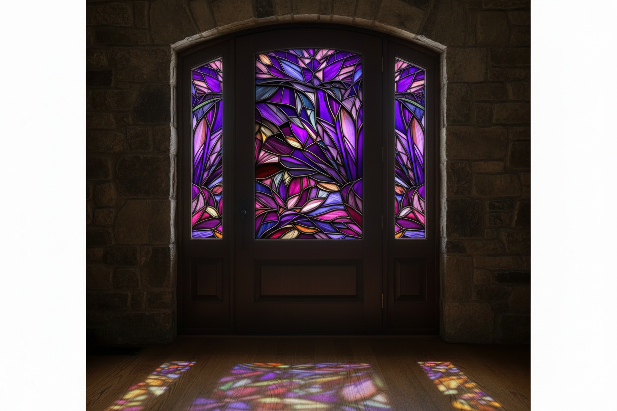 Custom Christmas Stained Glass Door Panels – Made to Your Exact Size Transform your front door into a glowing Christmas centerpiece. These custom stained-glass window panels are printed on premium window film and designed to look like real cathedral glass...